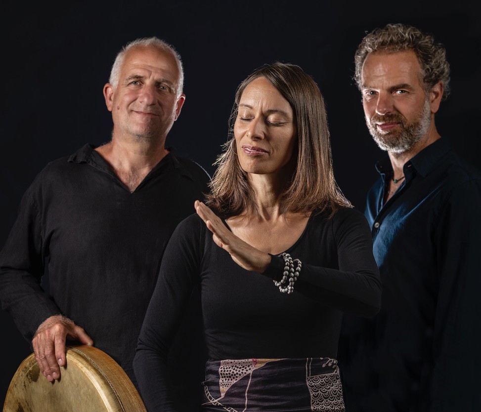Es keine Anfänge und keine Enden, verschiedene kulturelle Welten verbinden sich und ein unerklärlicher Zauber wird durch ihre Musik hörbar. Die Sängerin singt in einer universellen Sprache und berührt mit ihrer unverwechselbaren, warmen Stimme. Begleitet vom Gitarristen und Klangkünstler der auf seiner Gitarre spielt als gäbe es keine Grenzen und dem Percussionisten, der mit seinen Händen die feinsten Rhythmen aus seinen Instrumenten entlockt. Eine verspielte Klangdusche die belebt und gleichzeitig beruhigend wirkt. Sobald ihre Musik erklingt weiss man gar nicht mehr recht wo einem das Herz und die Sinne stehen.