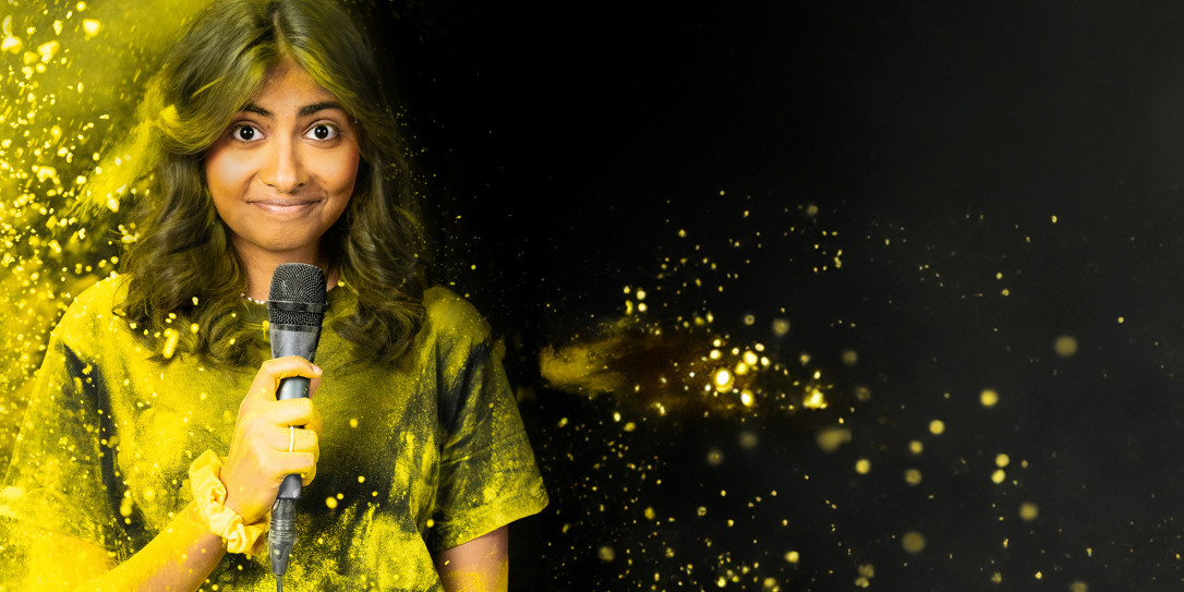 Frech, jung, charmant und vielleicht ein bizeli naiv. Reena Krishnaraja gewann bereits mit zarten 19 Jahren den SRF Best Talent Comedy Award 2022. Die gebürtige Ausserrhoderin mit tamilischen Wurzeln erzählt auf der Bühne, wie es diese Kombination durch den Alltag schafft. Aufgewachsen ist die Comedienne im Kaff Grub AR (beschte Dorf). In die Stand-up-Comedy-Szene geriet Reena aus Versehen. Um ihre Mathenote an der Kantonsschule zu kompensieren, schrieb sie ein 100-minütiges Programm als Maturaarbeit («i ha en 6er gha»). Reena an erste Open-Mics und wurde für Shows angefragt. Mittlerweile studiert Reena tagsüber Sozialwissenschaften in Bern und abends bespielt sie die Bühnen der ganzen Deutschschweiz.