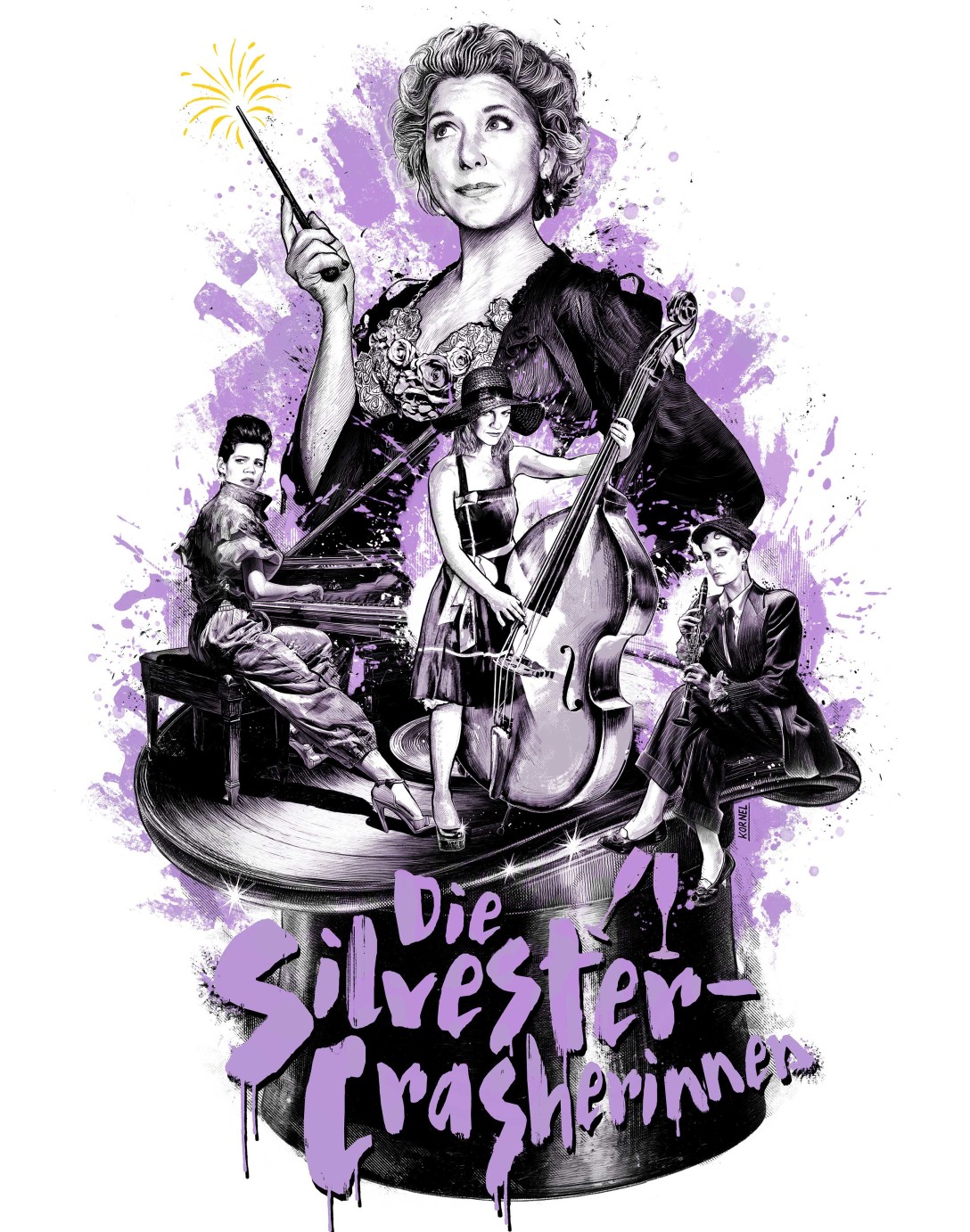 Die drei komischen Musikerinnen von siJamais und die charmante Zauberin LouDeMilla unterhalten ihr Publikum mit Musik, Magie und einer abgedrehten Geschichte. Mit Klarinette, Klavier, Kontrabass und verblüffenden Illusionen verläuft der Jahres-Rutsch über eine rasante Achterbahn der Gefühle. Absturz oder Happy End? Am liebsten beides!